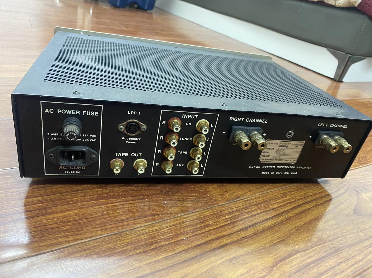 Bán ampli Cary Sli 30, ampli chạy điện 115v, made in usa xịn sò. Chất âm đặc trưng tự nhiên của Cary quá nổi tiếng rùi. Ampli chạy 8 bóng công suất EL84, 2 bóng 12ax7. Có volume chỉnh riêng mỗi bên. Ampli kéo được nhiều loại loa.