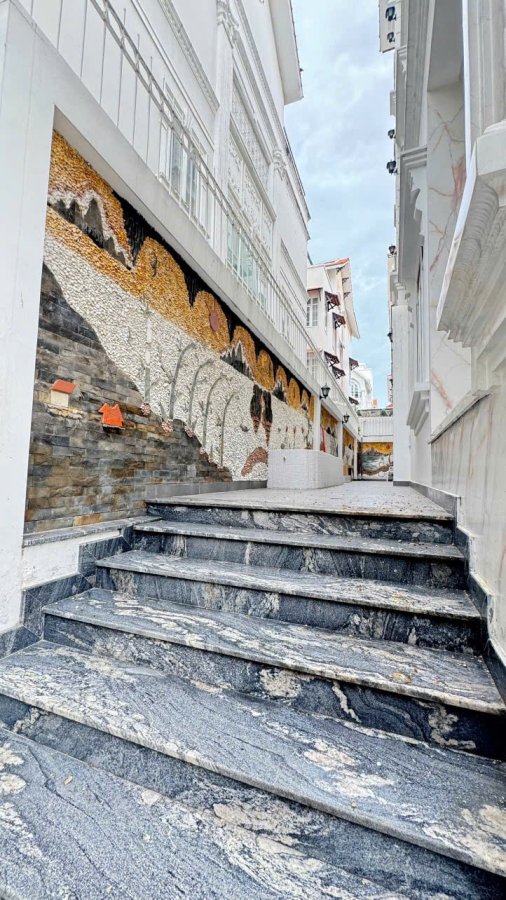 Kết cấu Hầm 4 lầu , sân thượng . gồm 7 phòng ngủ , phòng bảo vệ , phòng karaoke
