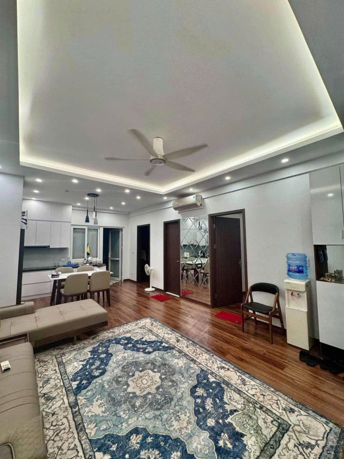 Nội thất đầy đủ: điều hòa, sàn gỗ, trần thạch cao, giường + tủ các phòng, tủ bếp trên dưới, bếp từ, hút mùi, nóng lạnh, bàn ăn + ghế, sofa + bàn trà, khách mua về chỉ việc xách vali về ở