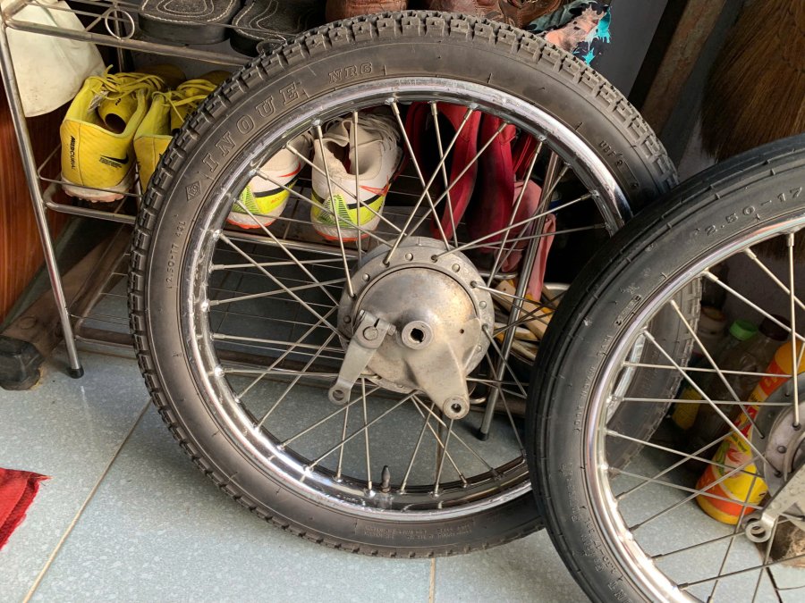 Bán cặp bánh. Đùm CS90, Zin, keo Zin, căm Zin, niền trước ARI 1.4, vỏ BS, niền sau DID 1.4, vỏ INOUE, giá 4300k (4 triệu 300 ngàn) + phí ship.