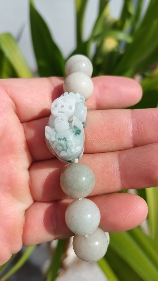 Chuỗi tay cẩm thạch tùy hưu xanh lý tự nhiên 14ly giá trên