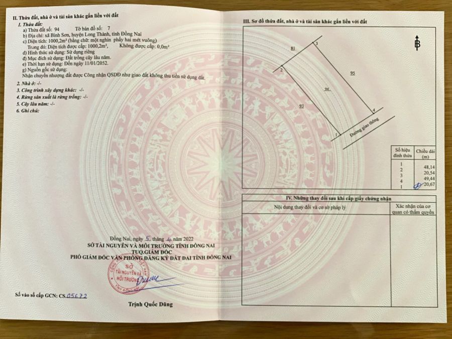 Bán đất xã Bình Sơn, Huyện Long Thành 1000.2m².