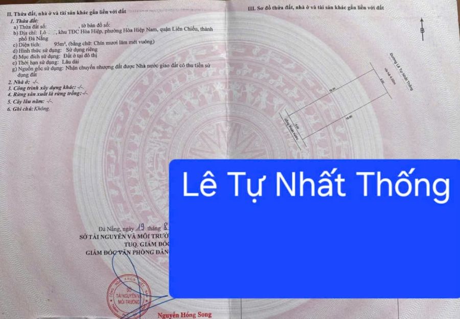- Vị trí lô đất: Nằm song song với đường Nguyễn Lương Bằng, khu đông dân cư, an ninh tốt, tiện ích xung quanh đầy đủ, gần trường học các cấp