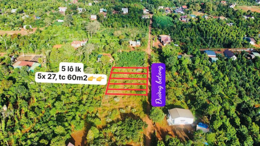 - Diện tích: 5*27m, thổ cư 60m2 mỗi lô