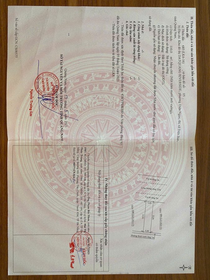 - Diện tích 110 m2 đất ở đô thị lâu dài