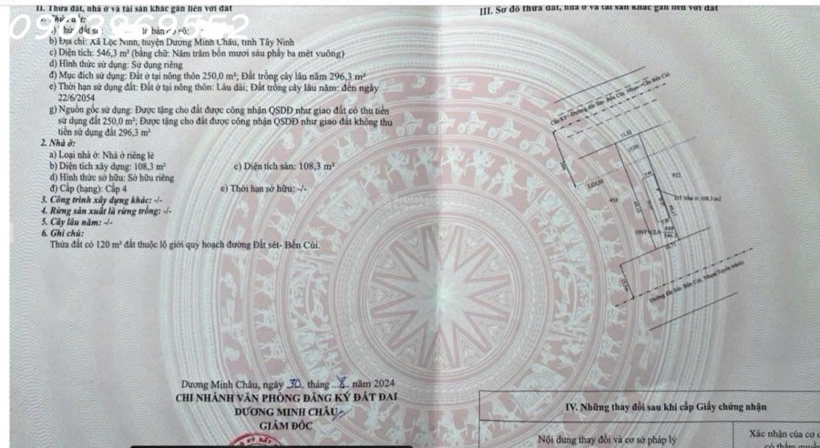 Nằm tại Lộc Ninh, Dương Minh Châu, Tây Ninh, khu đất này có diện tích 546,3m² và hướng cửa chính Đông Nam.