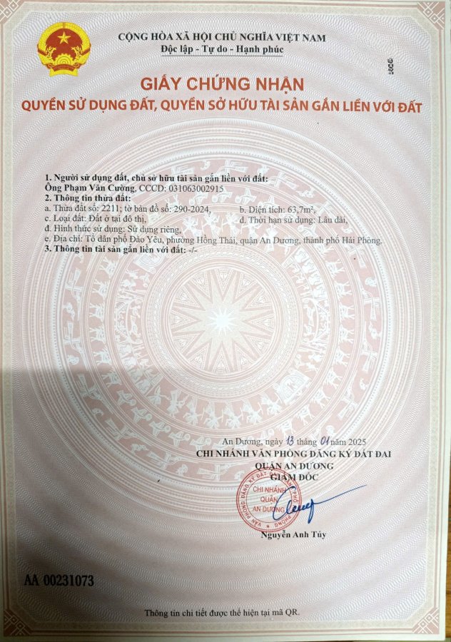 * Địa điểm : Đào Yêu - Xã Hồng Thái - Huyện An Dương - Hải Phòng