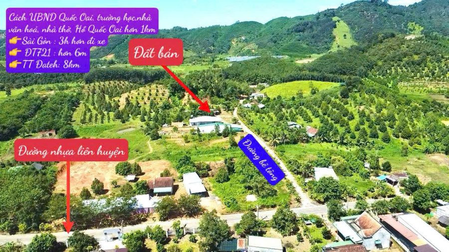 -Vị trí: Đất bám đường bê tông rộng 6m, cách nhựa liên xã chỉ 100m. Cách UBND xã Quốc Oai, trường học, nhà Văn Hoá chưa tới 1km, trường học xung quanh. Dân đông, tiện ích đầy đủ.