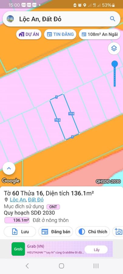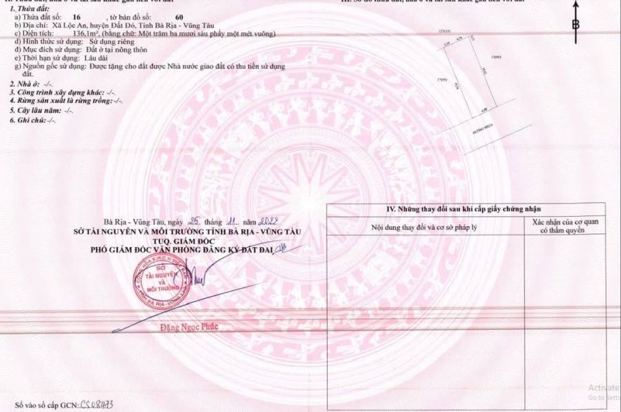 Bán đất mặt tiền đường nhựa xã Lộc An, huyện Long Đất, tỉnh BRVT.
