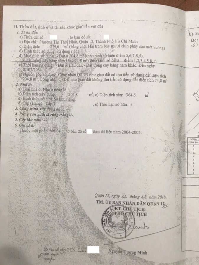 - Diện tích: 6,7m x 41,76m (công nhận 279,6m2 trong đó: 204,8m2 Đất ở, 74,8m2 Đất nông nghiệp)