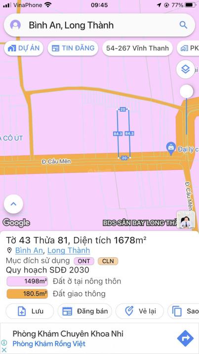 Bán đất MT đường Cầu Mên xã Bình An Long Thành 1678m2 giá 15,1tỷ