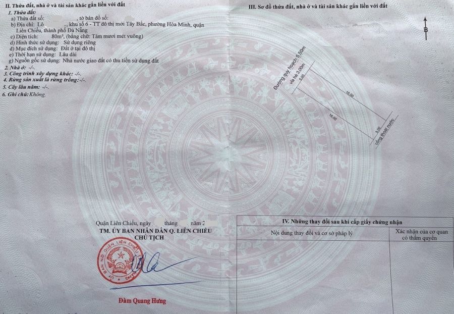Bán đất mt đường Hoà Phú 4 . Hoà Minh - Liên Chiểu- Diện tích 80m2 ngang 5m- Hướng tây bắc- Giá 3 tỷ xx