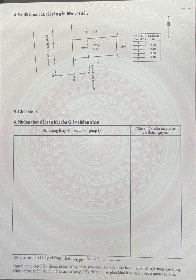 - DT sổ: 8 x 19 = 153m2 , nhưng thực tế còn 7,95 x 19 = 146m2 , bán theo hiện trạng)