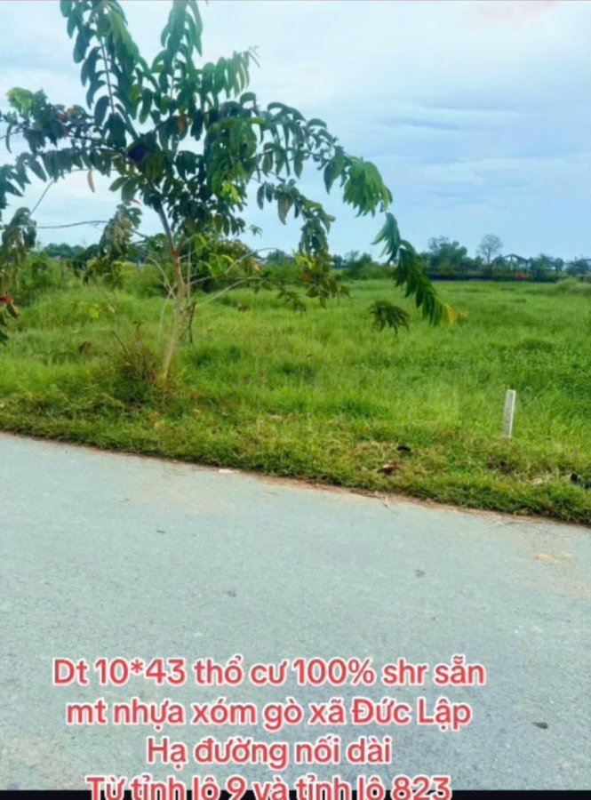 Bán đất thổ cư mặt tiền đường nhựa Xóm Gò , xã Đức Lập Hạ , Đức Hòa , Long An.
