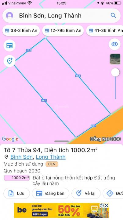 Bán đất xã Bình Sơn, Huyện Long Thành 1000.2m².