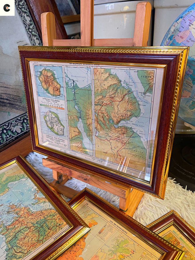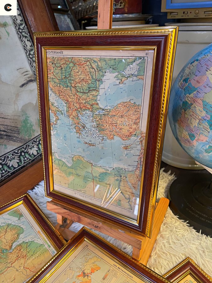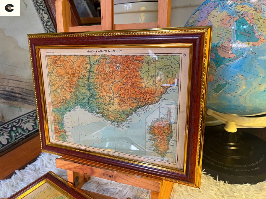 Bản đồ Atlas 1950s, ngôn ngữ Pháp.Được đóng khung kiếng kt 25*35cm.Giá 250k/1 bức, ưu tiên khách lấy hết.