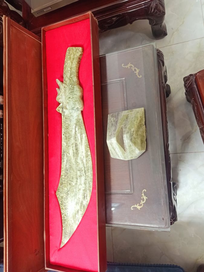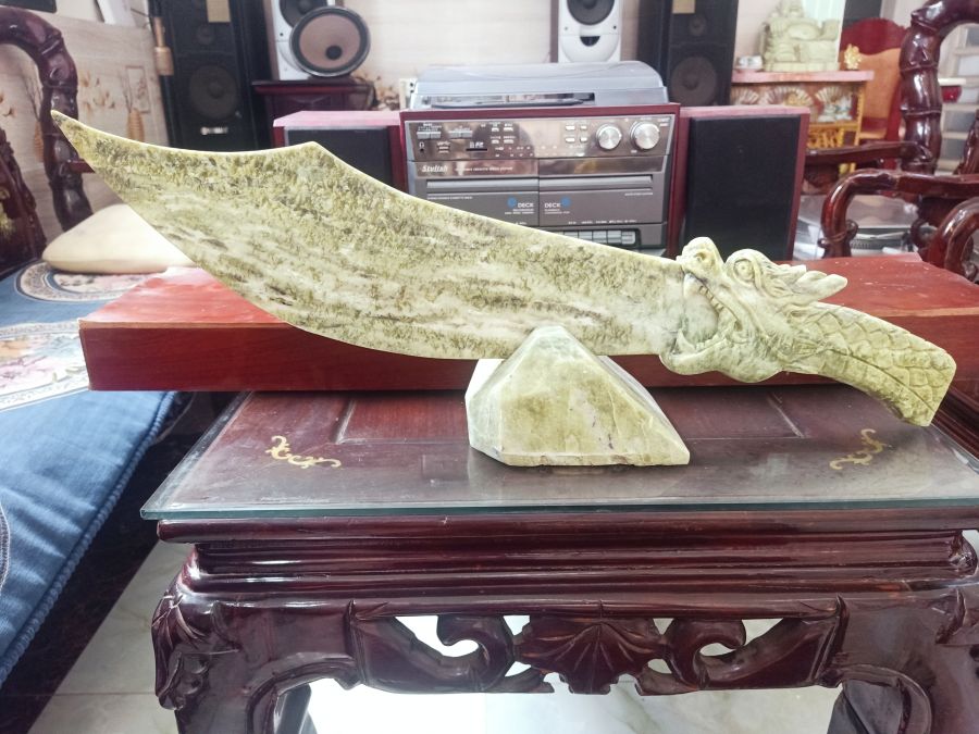 Bán đồ long đao đá dài cở 70 cm bằng đá ngọc nguyên khối cách đầu 1cn có vết gãy đã sử lí đẹp không thấy tỳ vết mời các bác gl