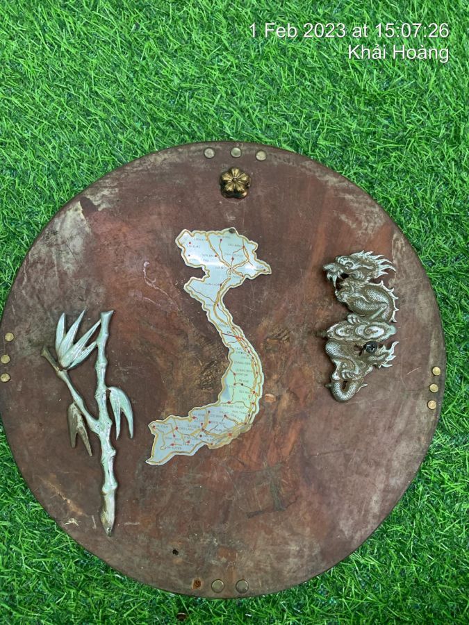 Em giao lưu bản đồ có đường phân chia vĩ tuyến 17, kèm bông mai thiếu uý **** và bụi trúc tượng trưng cho nền Đệ Nhất và Đệ Nhị ****. Tất cả bằng đồng thau gắng trên liễng gỗ!