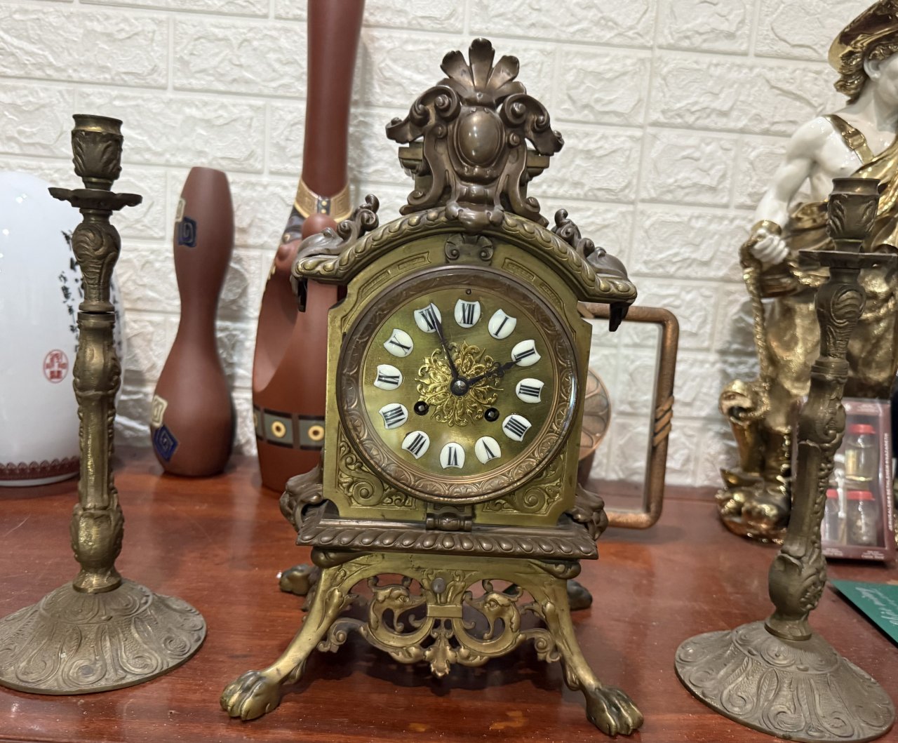 Đồng hồ cổ còn chạy tốt nguyên bộ + 2 cây để đèn cầy ACE quan tâm LH 0963396768