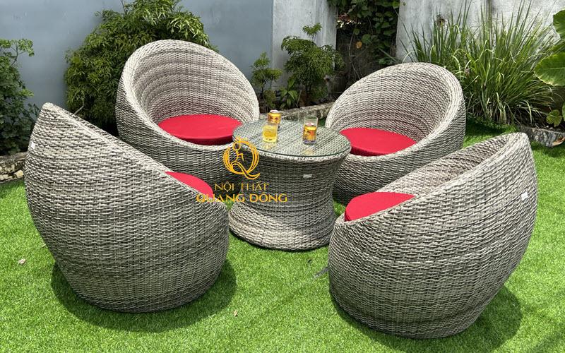 Bàn ghế giả mây QD-211 được thiết kế dáng hình trứng mới lạ