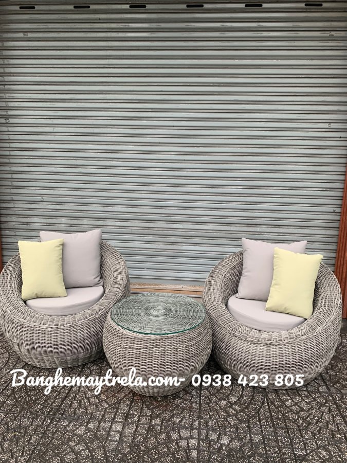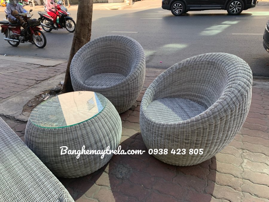 Chất liệu cao cấp: Mây nhựa giả mây đan tay tinh tế, chịu được thời tiết khắc nghiệt, không phai màu hay bong tróc dù đặt lâu ngoài trời.