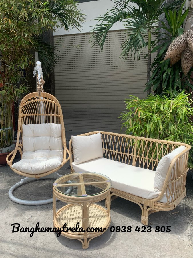 Mang đến không gian phòng khách vẻ đẹp gần gũi và tinh tế, bộ bàn ghế kèm xích đu làm từ mây tự nhiên là lựa chọn lý tưởng cho những ai yêu thích phong cách sống chậm và thiên nhiên. Thiết kế thủ công tinh xảo, màu sắc ấm áp cùng xích đu nhẹ nhàng tạo điểm nhấn thư giãn độc đáo trong nhà. Phù hợp với nhiều phong cách nội thất từ cổ điển đến hiện đại, dễ dàng kết hợp và bền đẹp theo thời gian.
