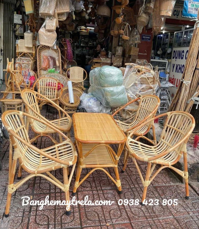 Đi kèm có các loại bàn như sau: bàn mây tròn đan kín, bàn tròn có kính, bàn vuông có kính, bàn chữ nhật có kính hay bàn đôn nhỏ gọn đều đẹp.