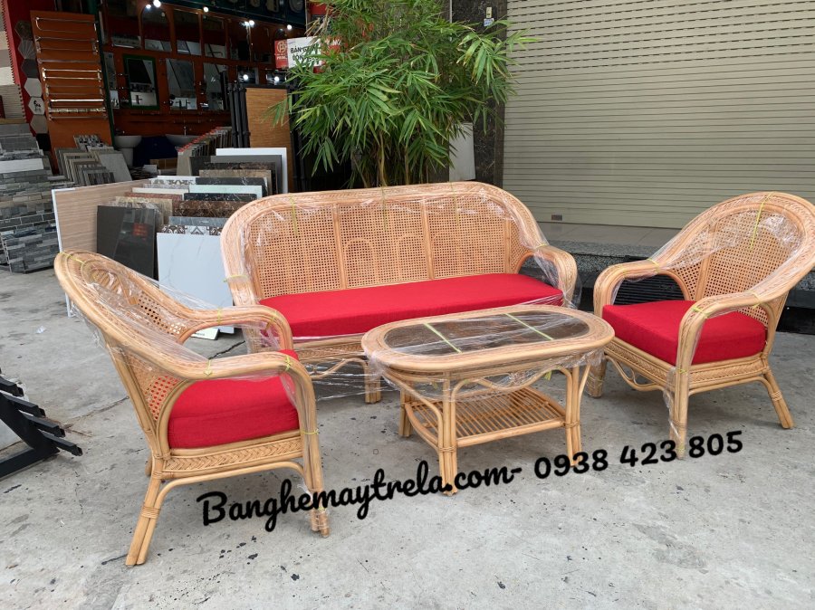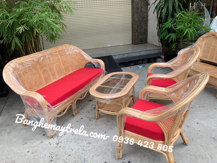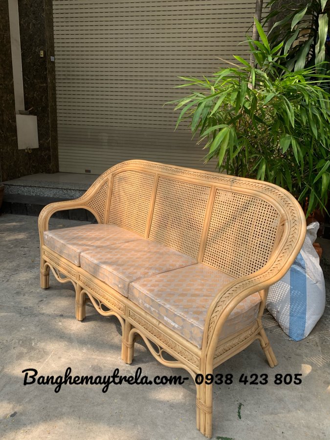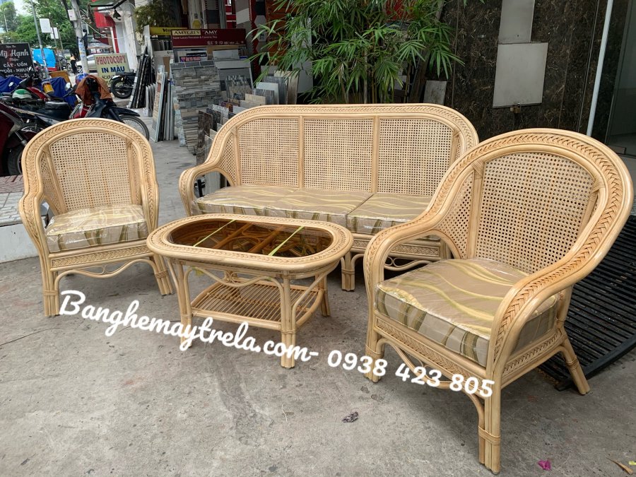 Bộ bàn ghế sofa mây tự nhiên phòng khách có khung chắc chắn, kết hợp lưới mắt cáo độc đáo, thoáng khí – nhẹ nhàng – thẩm mỹ
