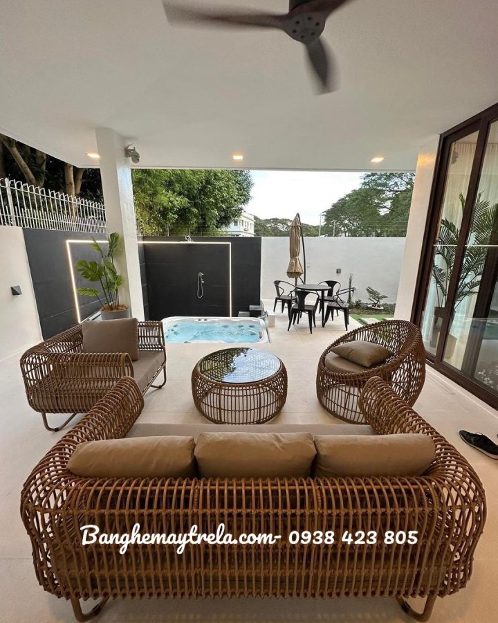 Mang phong cách hiện đại pha nét tự nhiên, bàn ghế sofa tổ yến đan mây nhựa là lựa chọn hoàn hảo cho không gian sân vườn, ban công, quán cà phê hay khu resort.