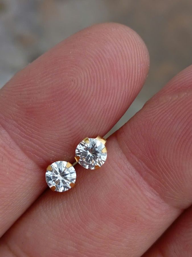 Hoa tai PNJ vàng 10k kim cương Moissantie 5ly có giấy phổ vàng và kim Moissantie giá trên