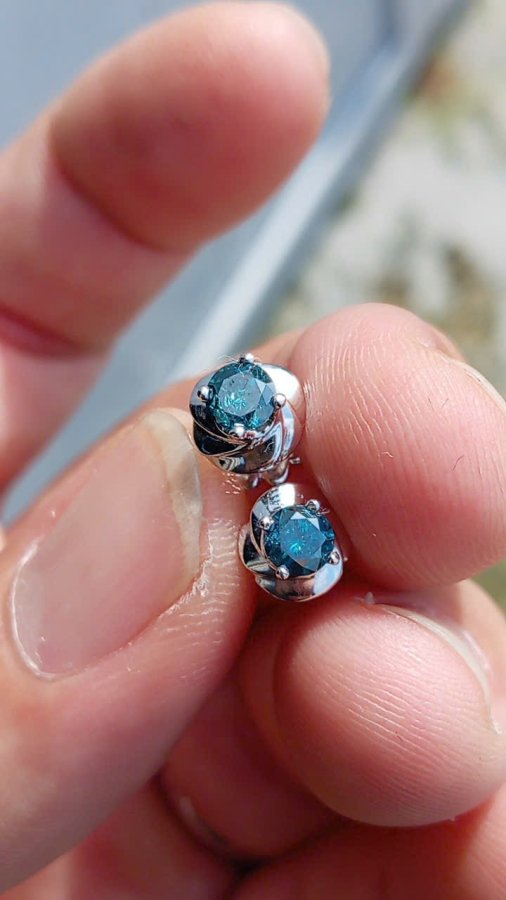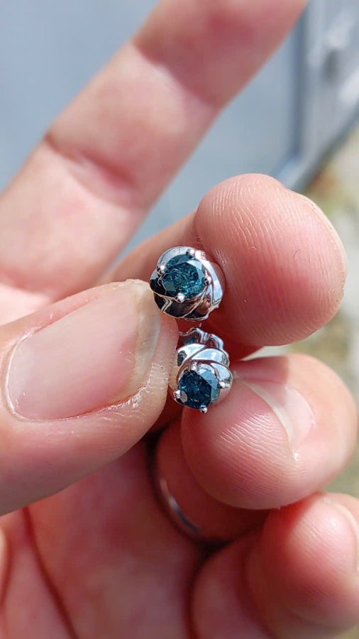 Hoa tai vàng trắng 10k đính kim cương xanh tự nhiên 4ly5 giá trên