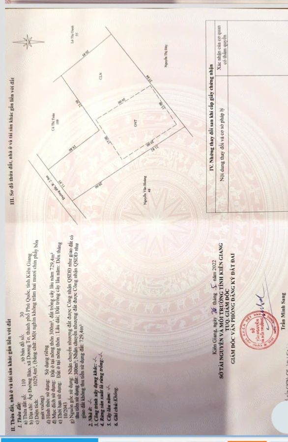 - Diện tích 1.030 m² (đất ở: 300m², đất cây lâu năm: 730m²), nằm trong khu dân cư đông đúc,