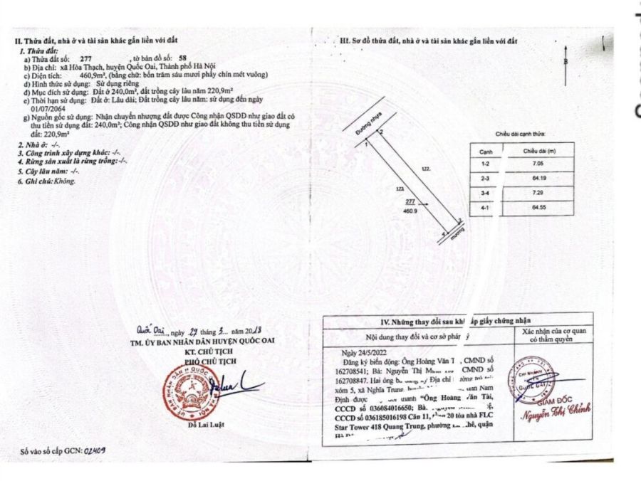 - Vị trí lô góc hai sổ đỏ mỗi sổ 240m2 đất thổ cư thuộc đất xã Hòa thạch trực chính cách đường 21A khoản 1km