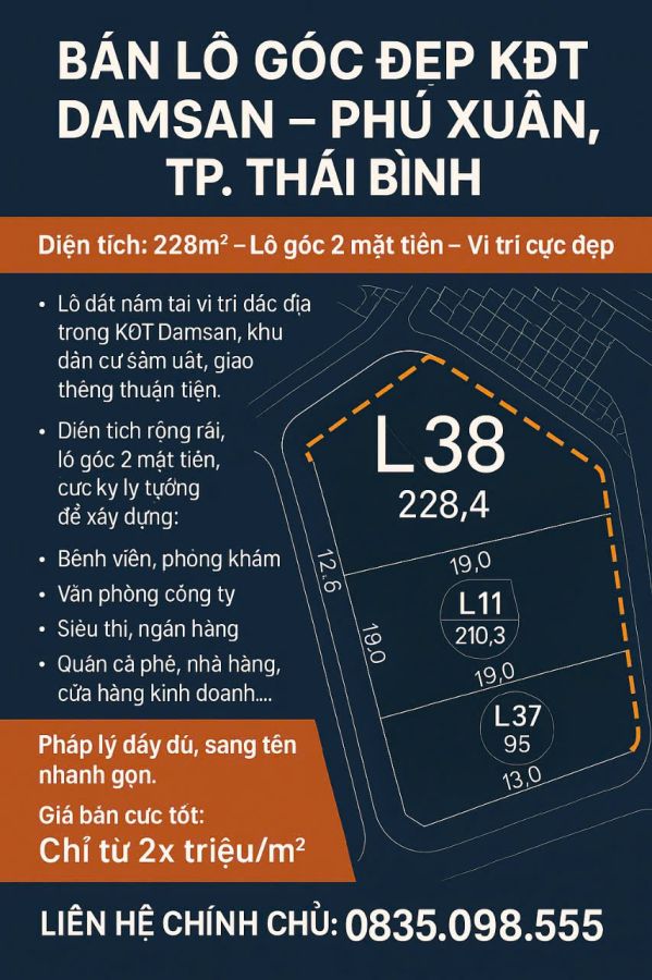 Bán Lô đất đẹp KĐT DAMSAN - Phú Xuân, TP. Thái Bình