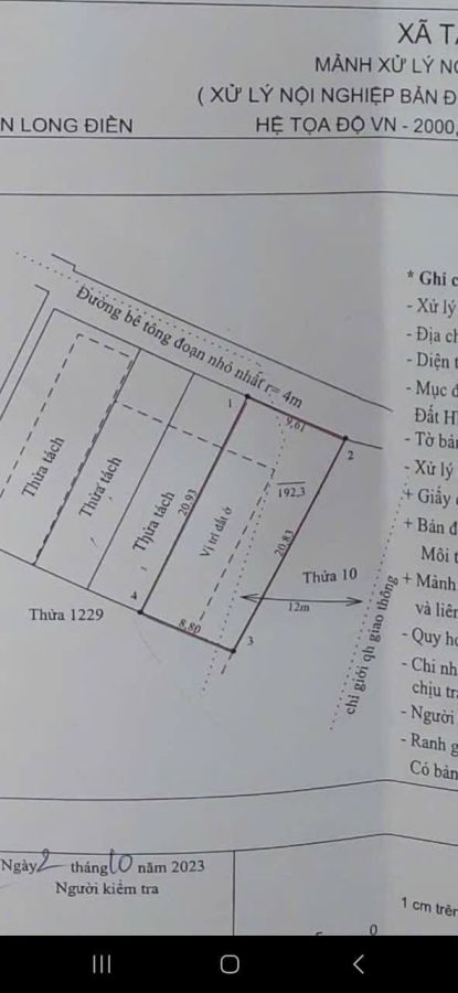 Bán lô đất diện tích 9,6m x 21m hẻm nhựa đường số 18 xã Tam Phước, huyện Long Đất.