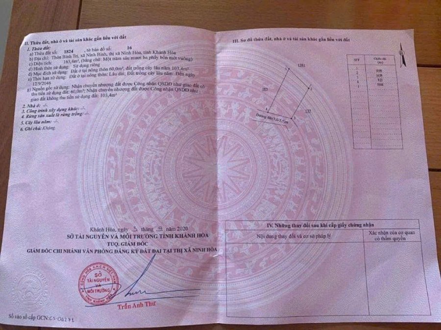 Chính chủ gửi bán lô đất full thổ cư Thôn Bình Trị - Xã Ninh Bình- Thị xã Ninh Hòa - Khánh Hòa