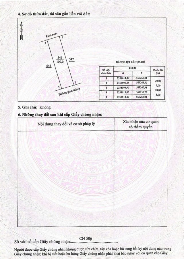 Diện tích:100 m² (mặt tiền 5m2, sâu 20m2)