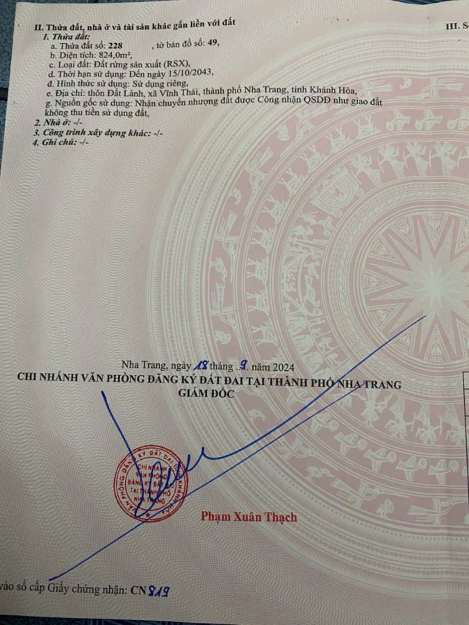 Diện tích: 824m² (ngang 20m x dài 40m)