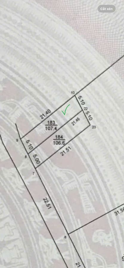 ** Diện tích là 107.4 m2, mặt tiền và mặt hậu đều là 5.1 mét, chiều sâu là 21.4 mét.