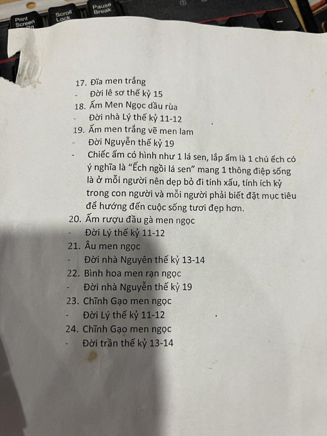 Ông ngoại để lại bộ St gốm sứ xưa. Nhà chật chội quá lại cbi sửa nhà, và cũng không có nhu cầu trưng bày. Nên bán lại cho anh em nào trên phố có nhu cầu và hợp nhãn ạ. Ngoài 22 mục có đánh số là đồ xưa theo như ông ghi lại. còn lại nhiều loại như hình. Anh em ở Đà Nẵng hay gần xa có nhu cầu xin liện hệ em giao lưu lại ạ. ngoài ra còn có chậu dác họa tiết = VÀNG ĐỨC độc bản ạ.