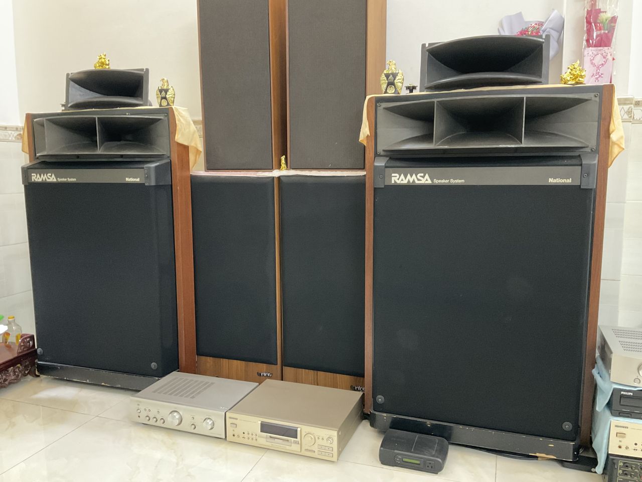 Bán loa khủng Ramsa ws 9300.nguyên zin.gồm 2bass 40.một còi .cao 1m3 .ngang 82 sâu 60.chất âm quá tuyệt vời nhạc nào cũng ok hết.nghe xasophone và gita thôi rồi...bao hay .bán và gd tại nhà vì em nó nặng quá....giá 38tr vnđ lh:0933388861 (loa ramsa này có nhiều nhưng cặp này rất hiếm và hay)