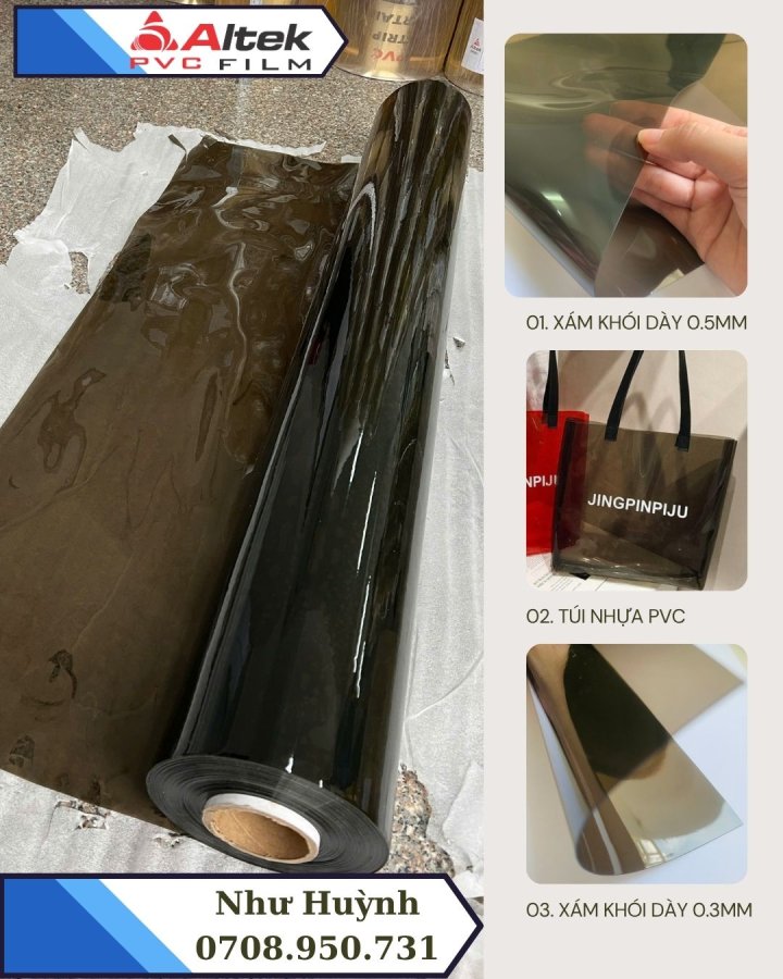 📌 MÀNG NHỰA PVC DẺO MÀU XÁM KHÓI