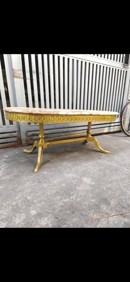 Bán lại cái bàn mặt đá chân đồng hóa văn rất đẹp (KT 120x55x48cm) tất cả lành tít.
