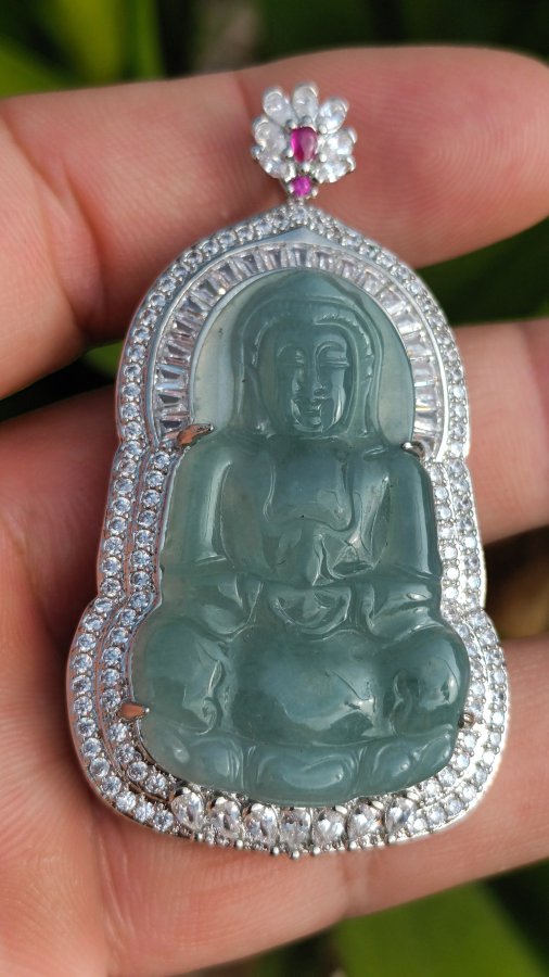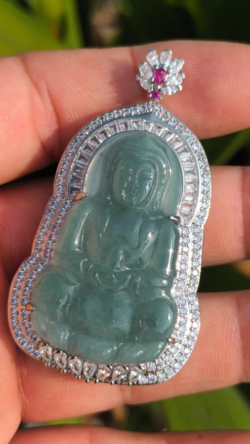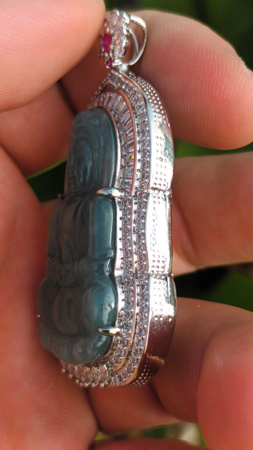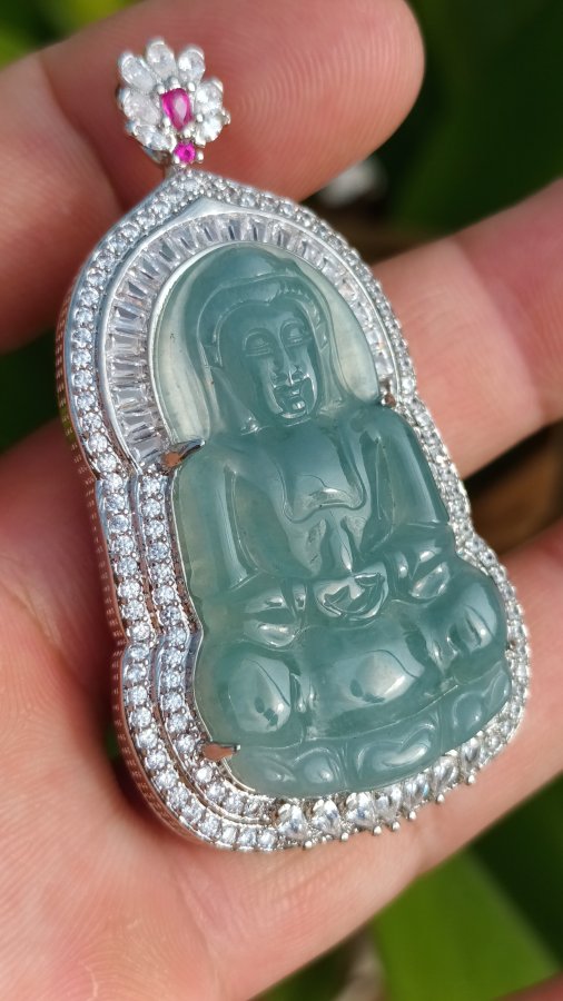 Mặt đeo ngọc lam phỉ thúy khung hợp kim đính đá cz giao lưu giá trên