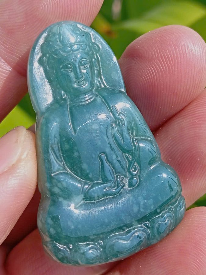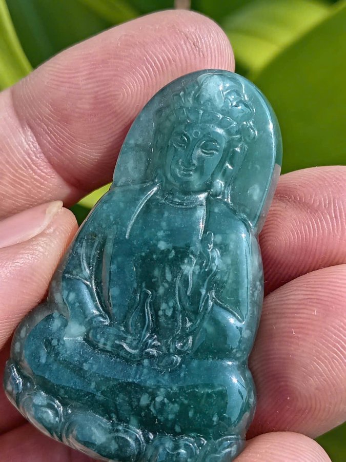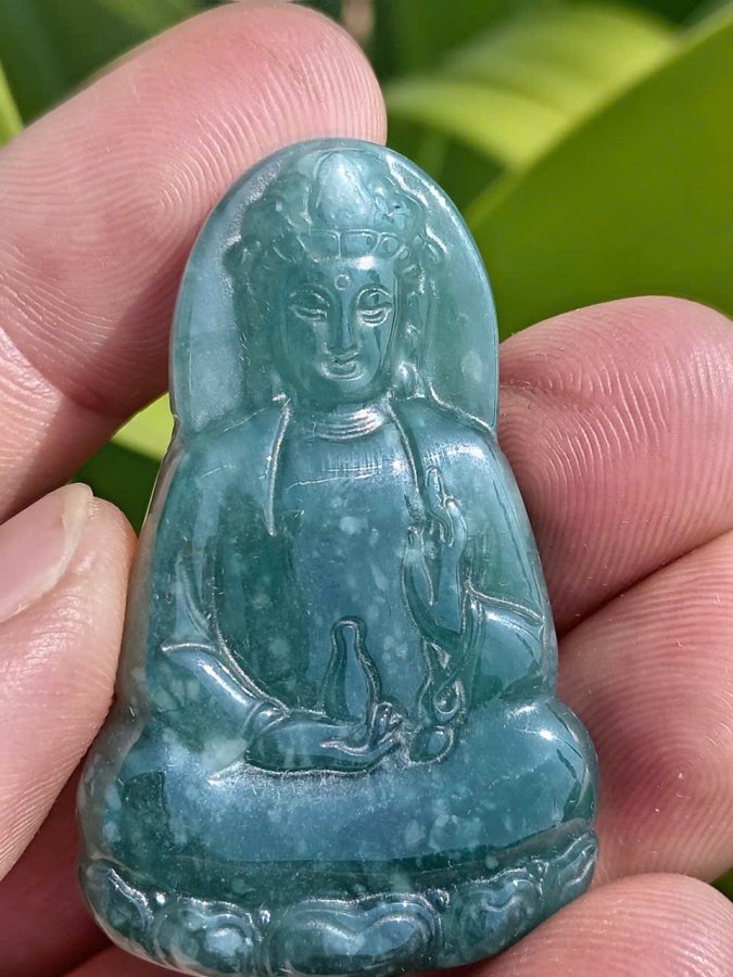 Bán mặt đeo ngọc lam phỉ thúy hoa bay chạm quan âm