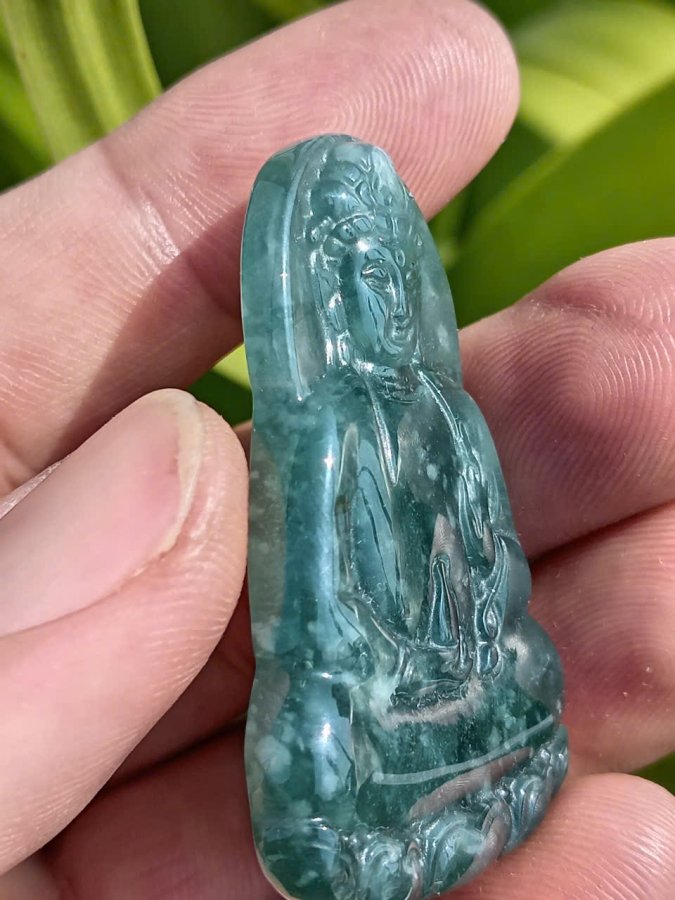 Mặt đeo quan thế âm phỉ thúy ngọc lam hoa bay y hình gía trên