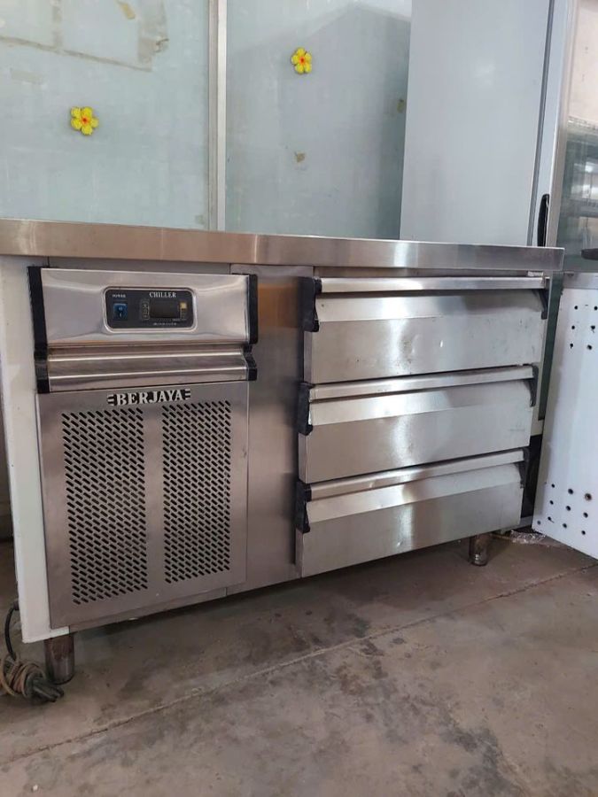 BÀN MÁT INOX BERJAYA 3 NGĂN KÉO, DÀI 1M2