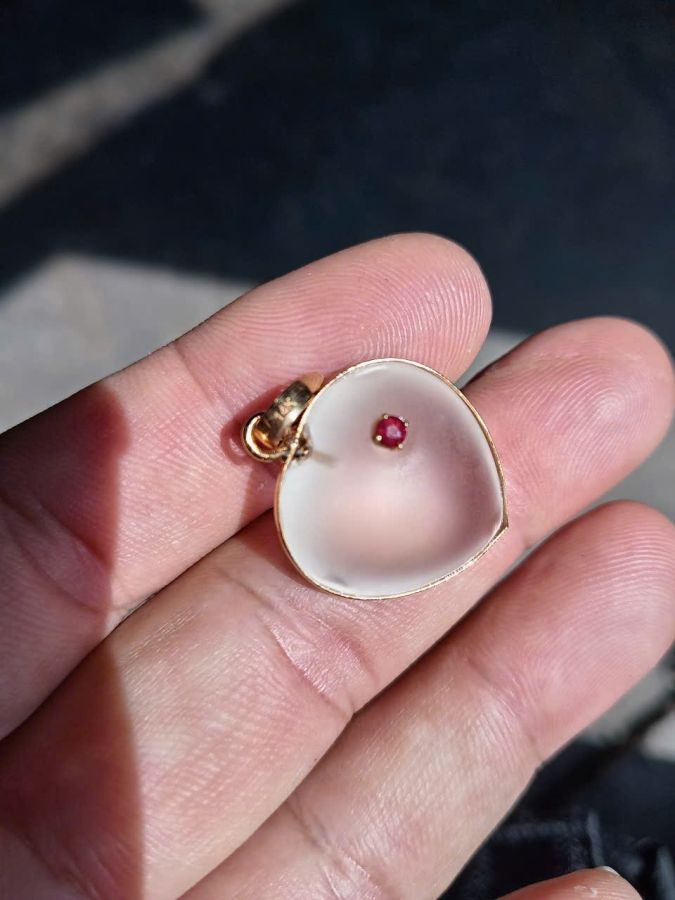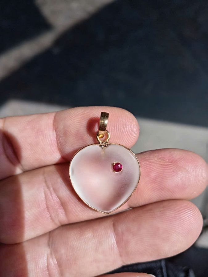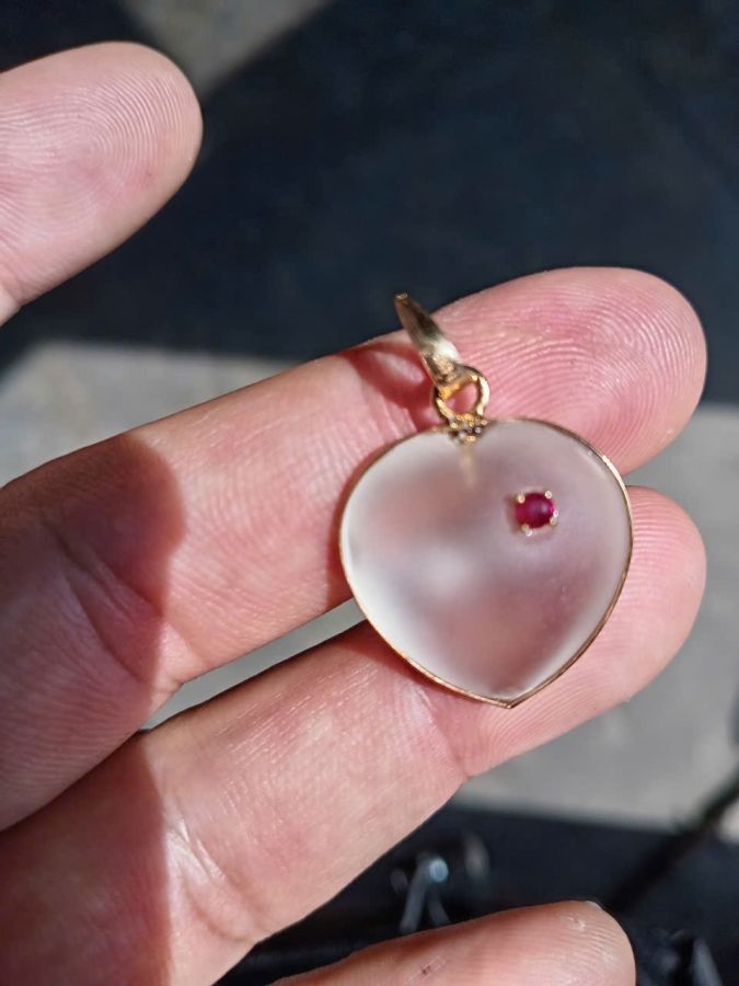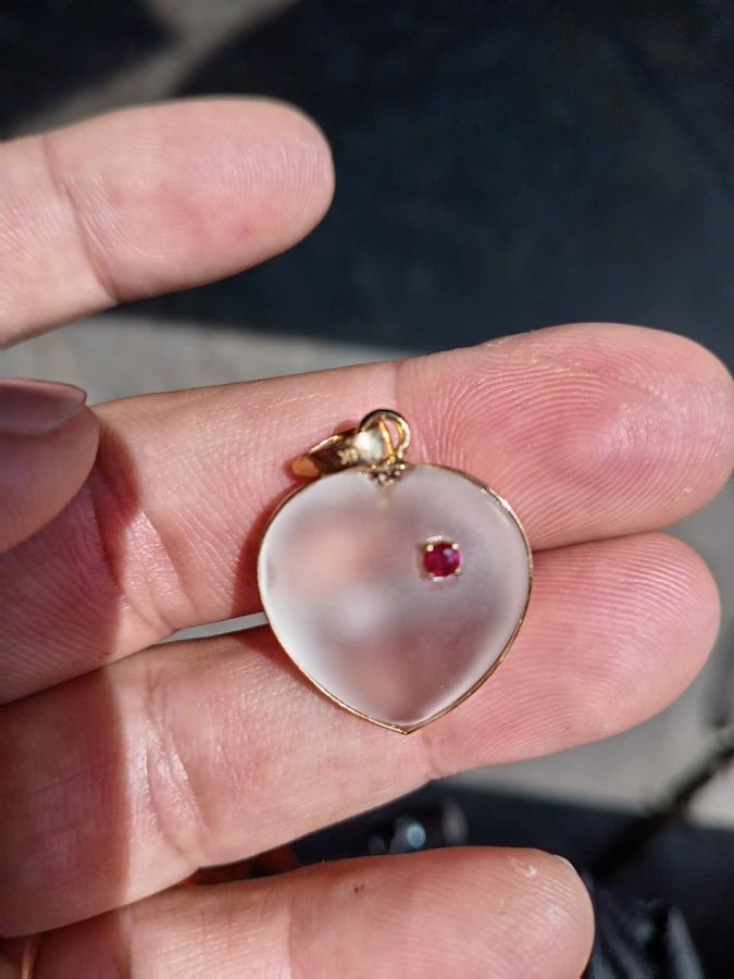 Bán mặt trái tim vàng 14k đá thạch anh trắng điểm spinel đỏ