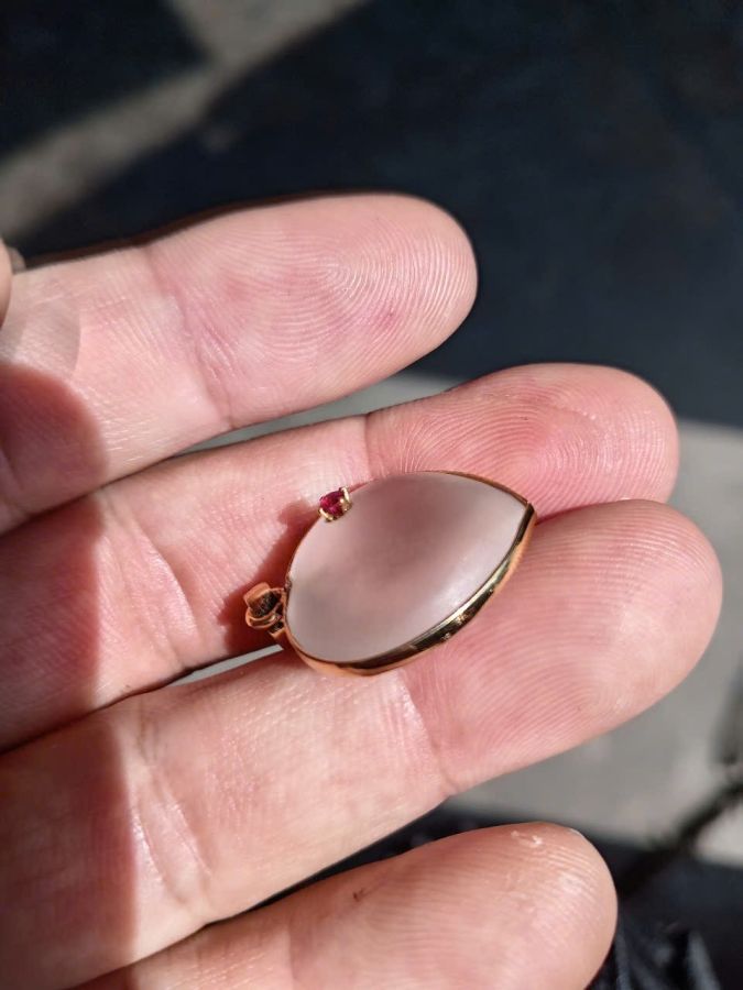 Mặt trái tim ngoại vàng 14k đá thạch anh trắng tự nhiên điểm spinel đỏ