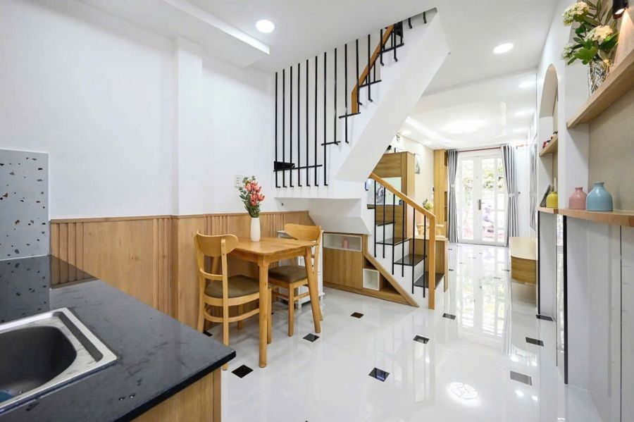 👉 HẺM 3.5m trước nhà, vài bước chân ra HẺM XE HƠI. Thiết kế hài hòa tông màu gỗ chủ đạo, tao nhã.